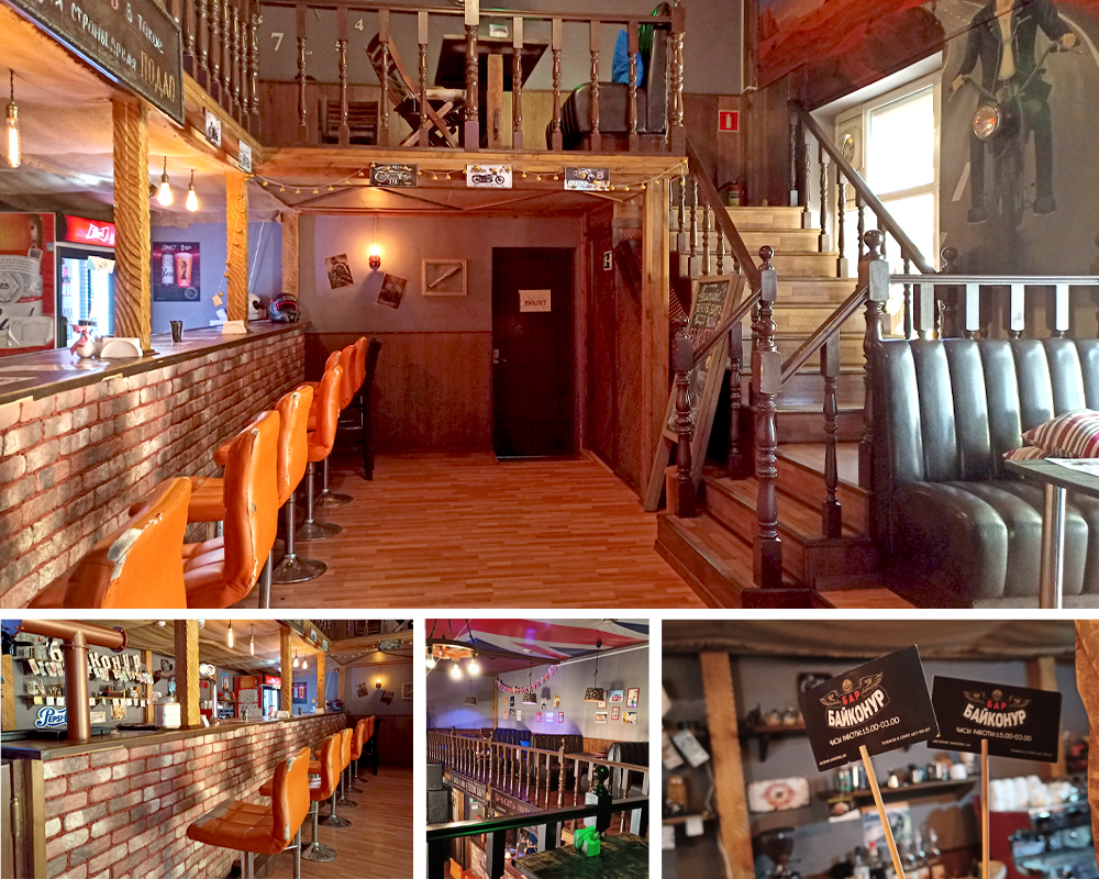 Бар «Байконур» – это место для друзей. Благодаря интерьеру, бар легко заменит дружеские посиделки на кухне – здесь гостеприимно и весело. В баре «Байконур» можно вкусно поесть и посетить выступления музыкантов. По выходным проводятся тематические вечеринки.